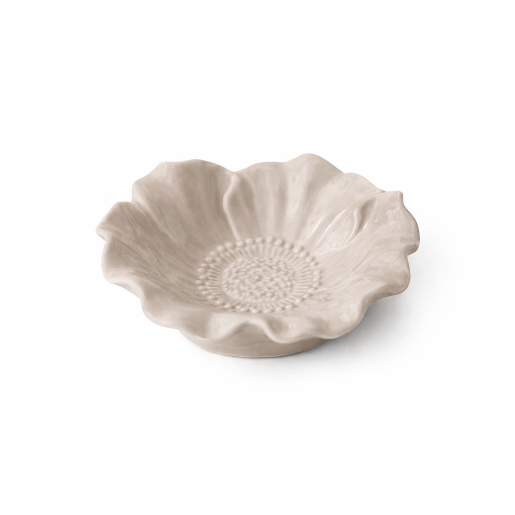 Blomstraskålarna är ljuvliga hantverk i blomstrande anda med detaljer som ger det där lilla extra till det dukade bordet. Finns i tre olika färger: cloude, white och sand. Gjorda i keramik som tål micro och diskmaskin samt är certifierade för livsmedel.