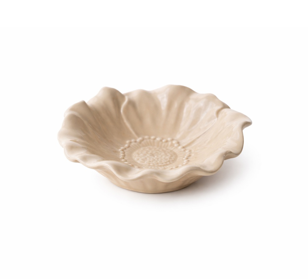 Blomstraskålarna är ljuvliga hantverk i blomstrande anda med detaljer som ger det där lilla extra till det dukade bordet. Finns i tre olika färger: cloude, white och sand. Gjorda i keramik som tål micro och diskmaskin samt är certifierade för livsmedel.