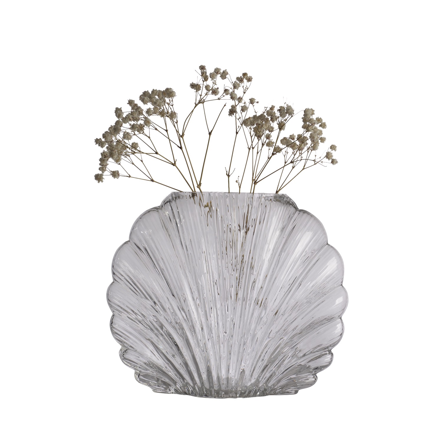 Läcker vas av transparent glas i from av en snäcka, passar perfekt för en liten bukett, strån eller kvistar. Placera den på bordet för en somrig dukning eller i hyllan för att ta in sommarkänslan.