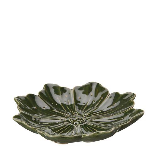 Vackert fat av grönmelerat porslin i form av en blomma. Perfekt för snacks, godis, desserter, fika eller andra uppläggningar. Matcha gärna med våra övriga blomfat i olika färger.