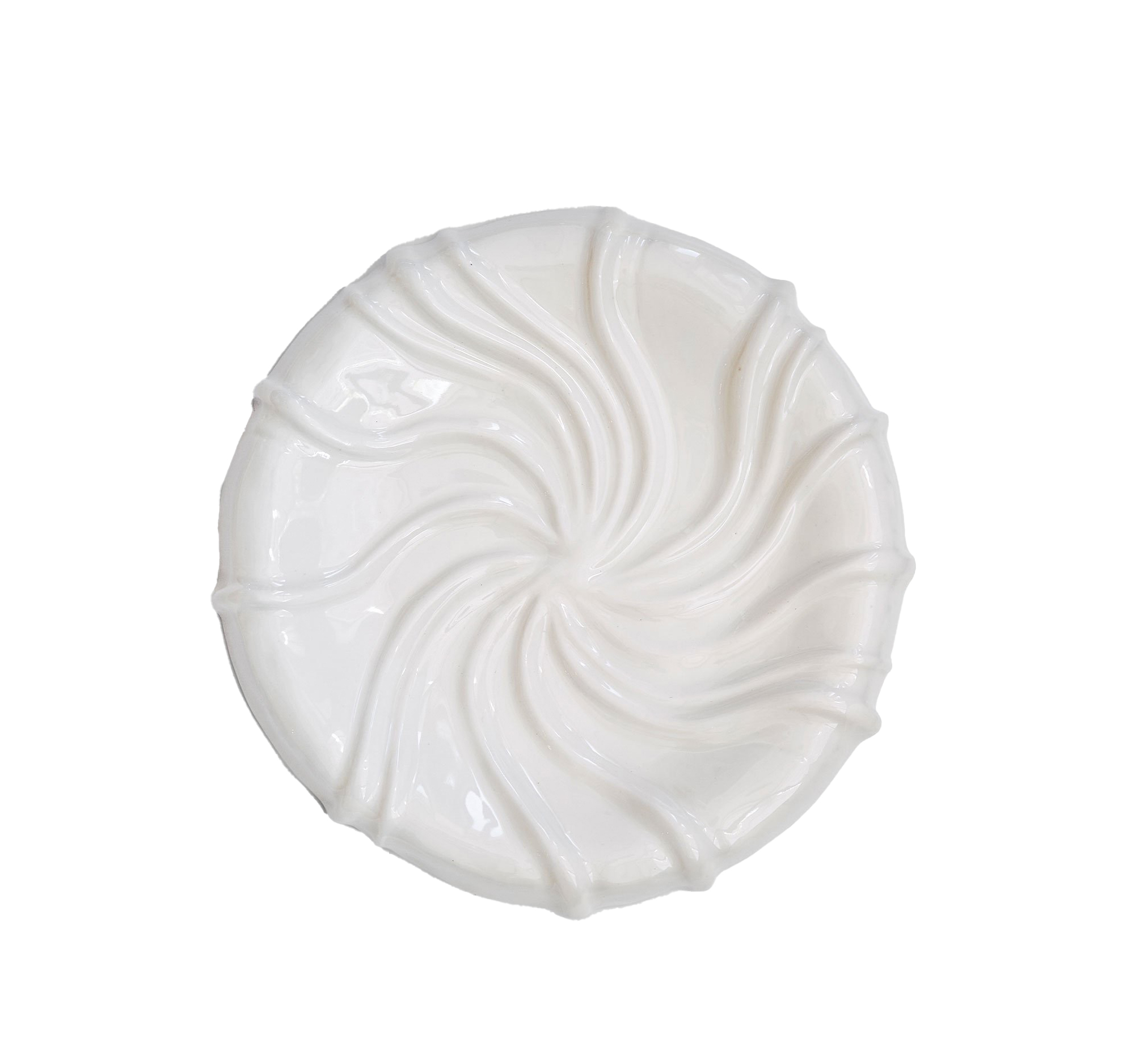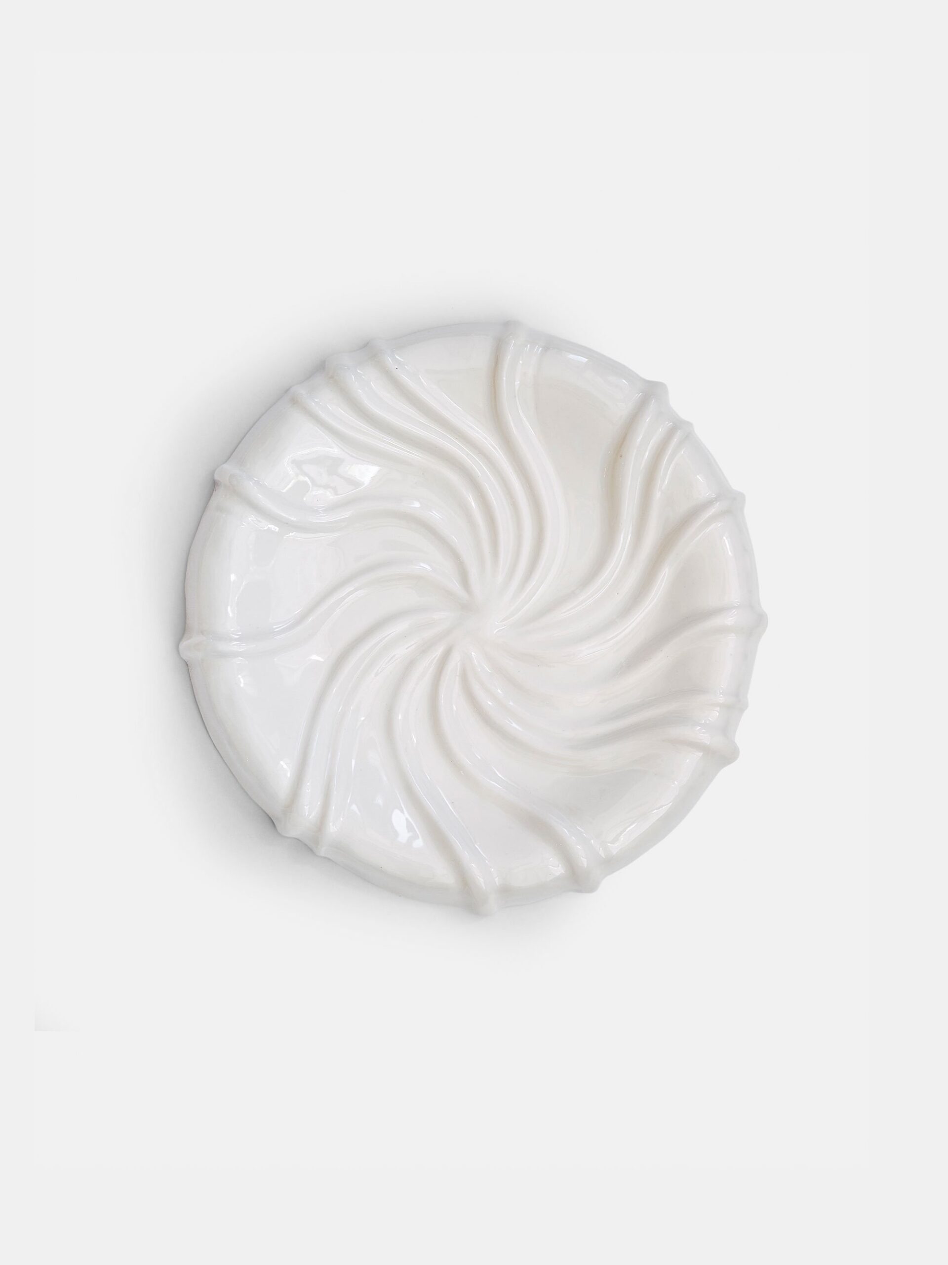 Tides Plate, från Atelier Marée, är ett vackert vitt fat handgjord i Århus av den finaste vita porslinsleran. Ytan är inspirerad av den vågiga sandbottnen när vattnet har dragit sig tillbaka och avslöjar den nakna havsbotten, vilket är den unika egenskapen hos detta ständigt föränderliga område. Använd tallriken som ett fat till koppen från samma kollektion, som en tallrik för uppläggning, dessert eller för att förvara dina favoritsmycken på.