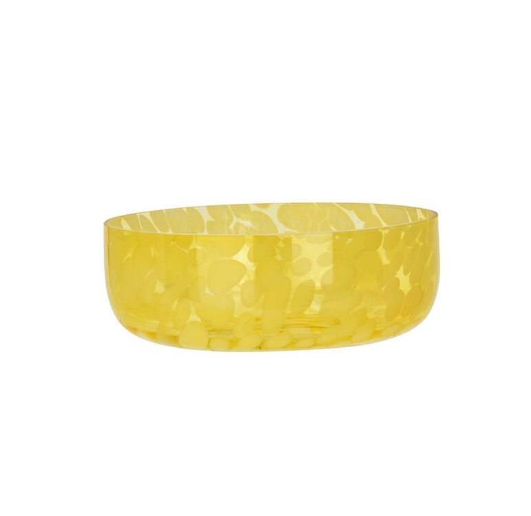 Sätt en färgklick på bordet! Läcker skål i mönstrat glas. Perfekt för servering av vårens och sommarens sallad, snacks, glass eller bär. Finns i tre olika färger: Gul/Rosa/Grön