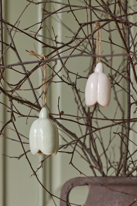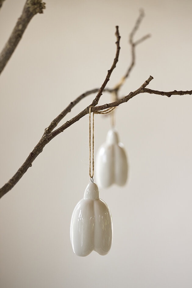 Vackert litet hänge i form av en blomknopp i vitt med en litet hänge inuti som ger ett vackert klingande ljud när du rör den. Häng det i riset och kombinera med några vita porlsinsägg för en vacker och stilren påskkänsla.