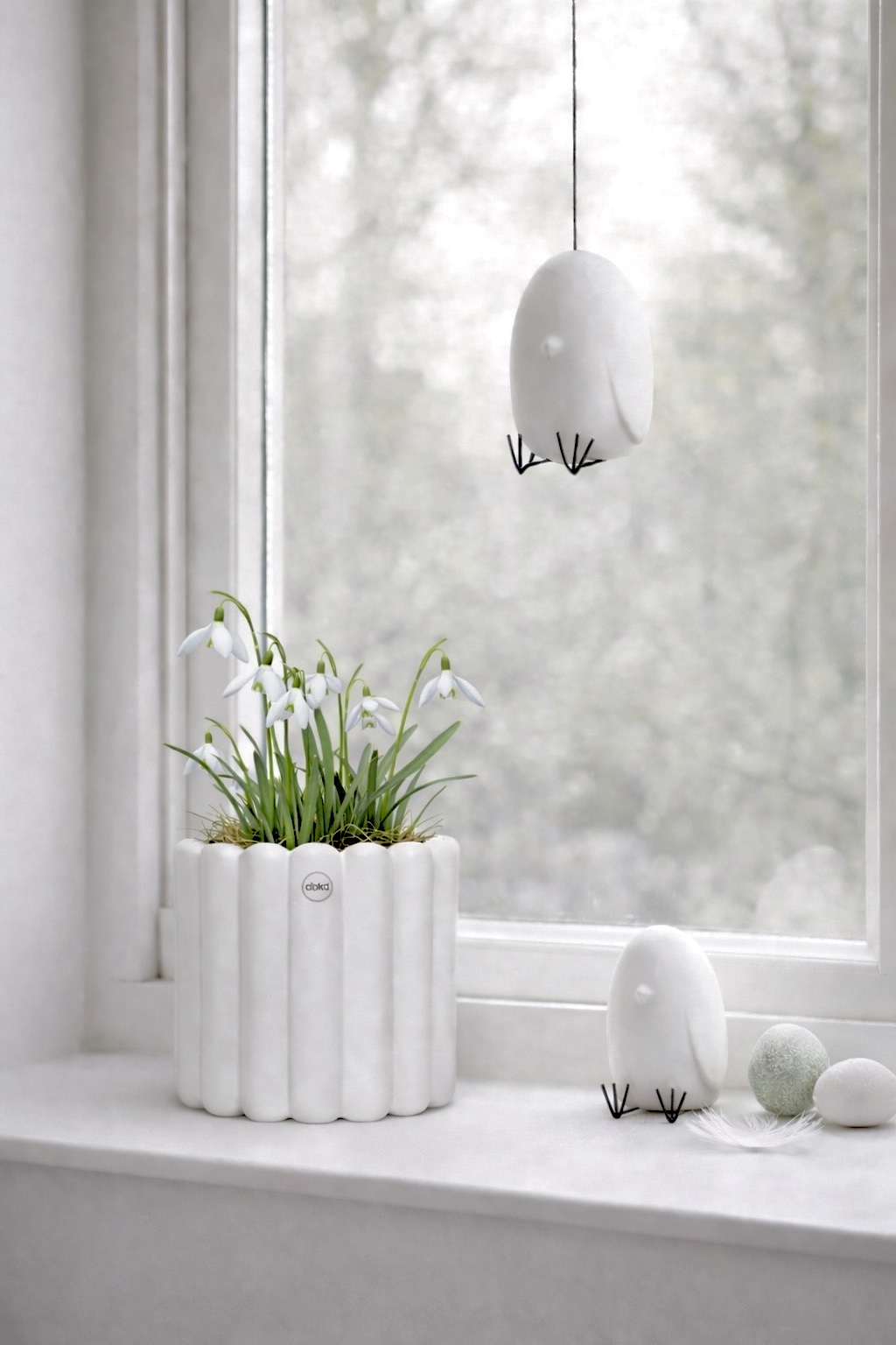 Behöver vi inte alla en glad kyckling i våra fönster?! Hang Around är ett underbart hänge från DBKD som håller ett öga på ditt hem och är lika bekväm med eller utan en vän. Lika fin till påsk som året runt, hängandes i fönstret eller på en krok på väggen eller varför inte ute på balkongen/verandan (tål vatten).