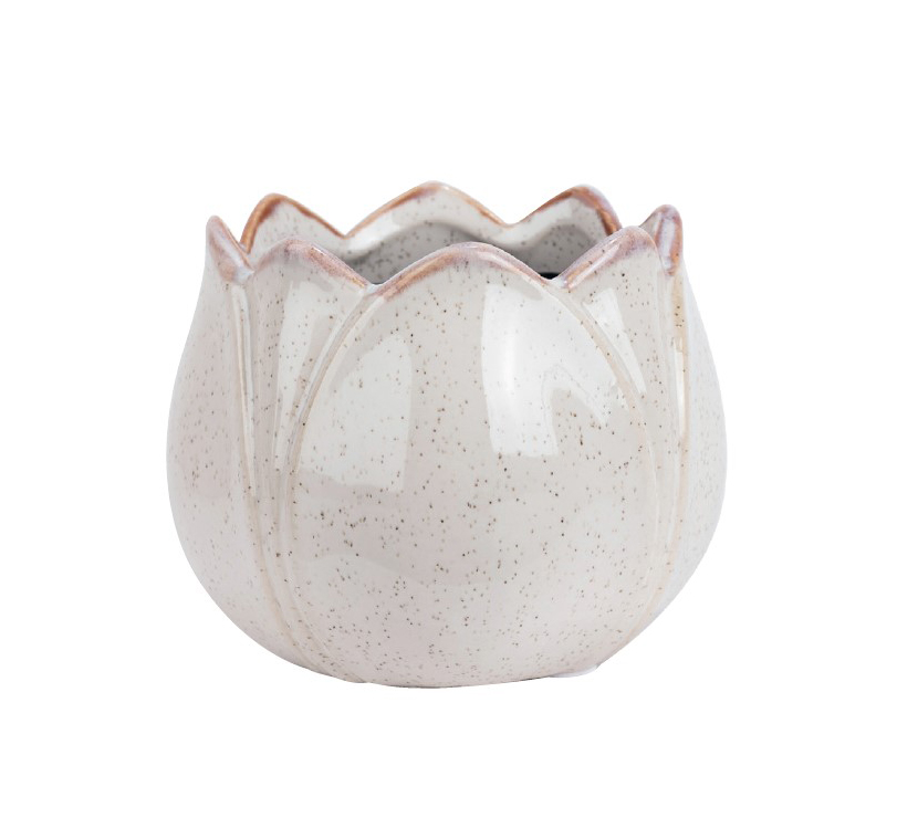 Dekorativ kruka av vit keramik i form av en blomknopp. Fin som den är eller fylld med en växt eller en vårlök. Finns även en mindre kruka i samma serie, kombinera för en vårinspirerad grupp.