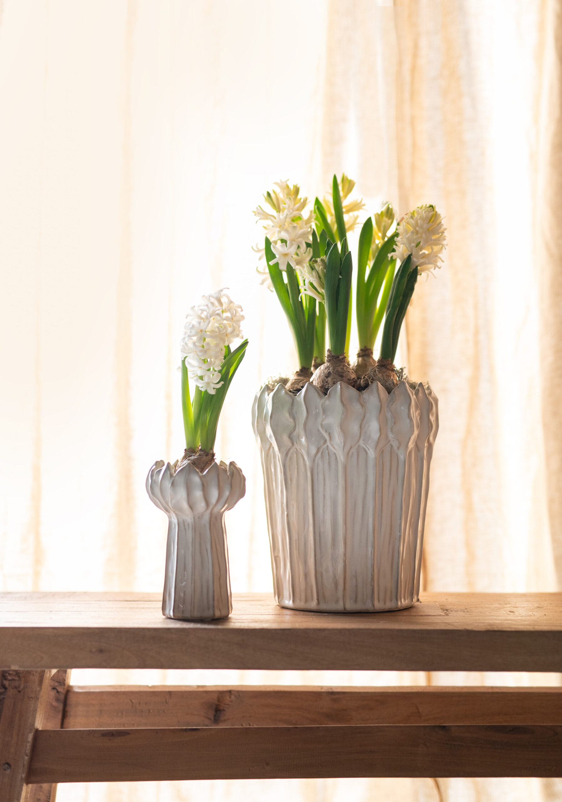Vackra lökvaser av stengods med organsisk form. Passar perfekt för t ex en hyacint eller andra lökväxter till jul men lika bra för en liten bukett eller några kvistar eller strån året runt.