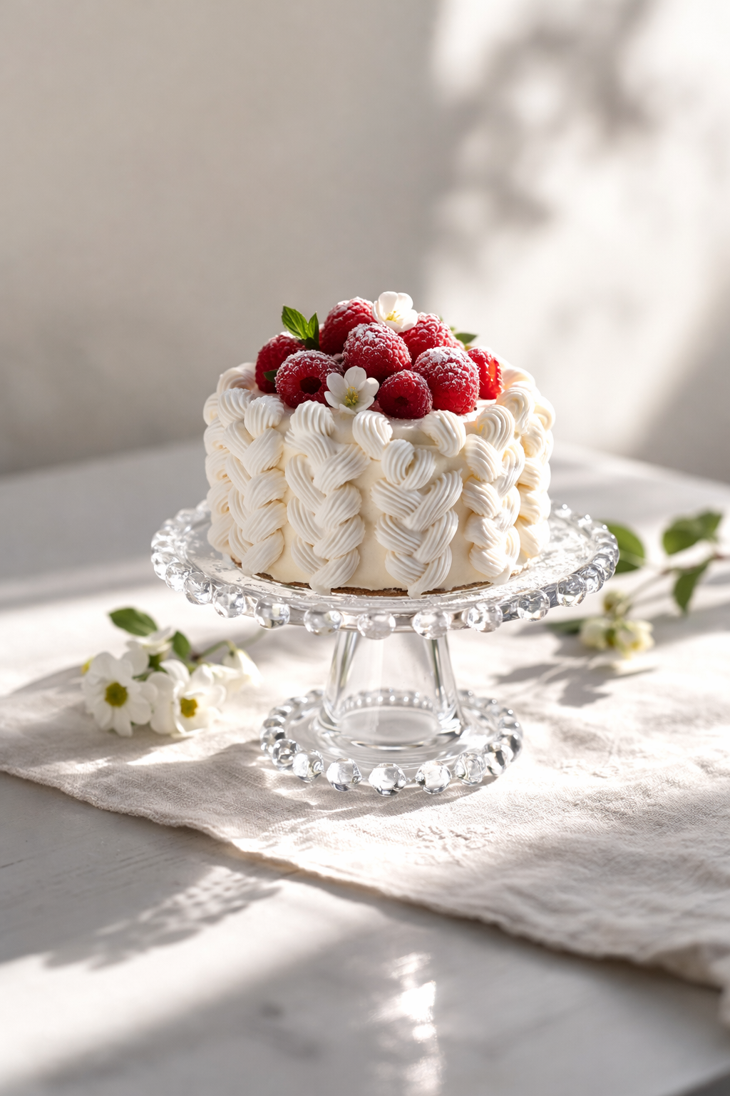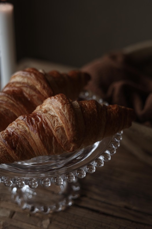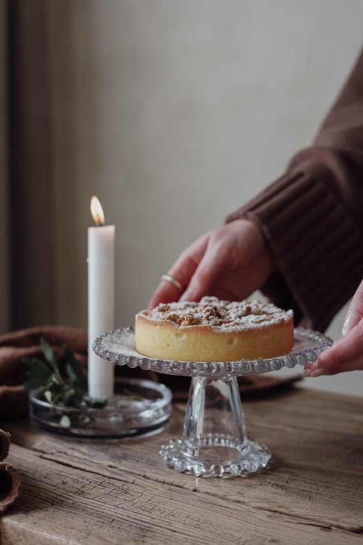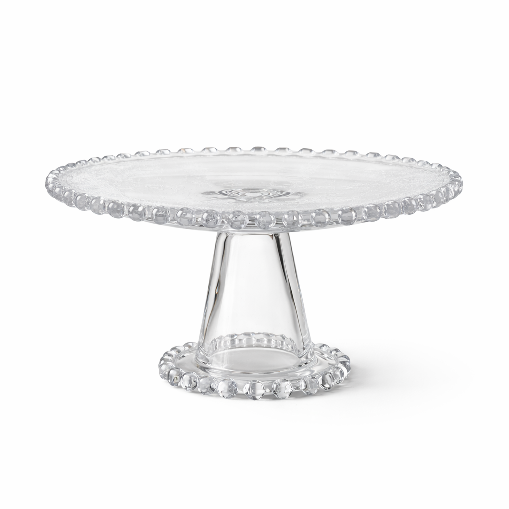 Stilrent fat på fot i klarglas med söta detaljer, från svenska Majas Cottage. Fint att servera små tårtor, bakverk, kakor och godsaker på samt använda som ljusfat för blockljus.