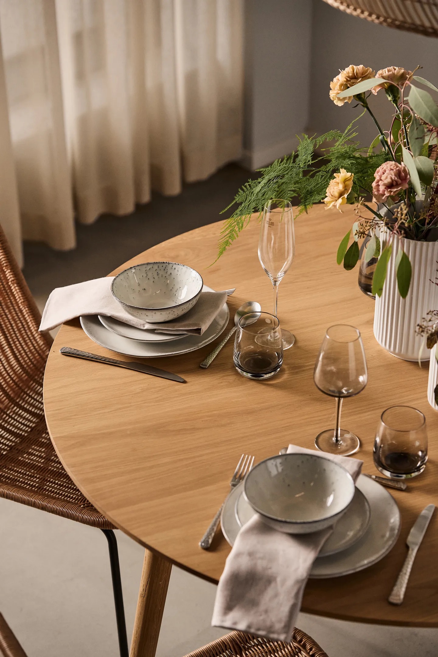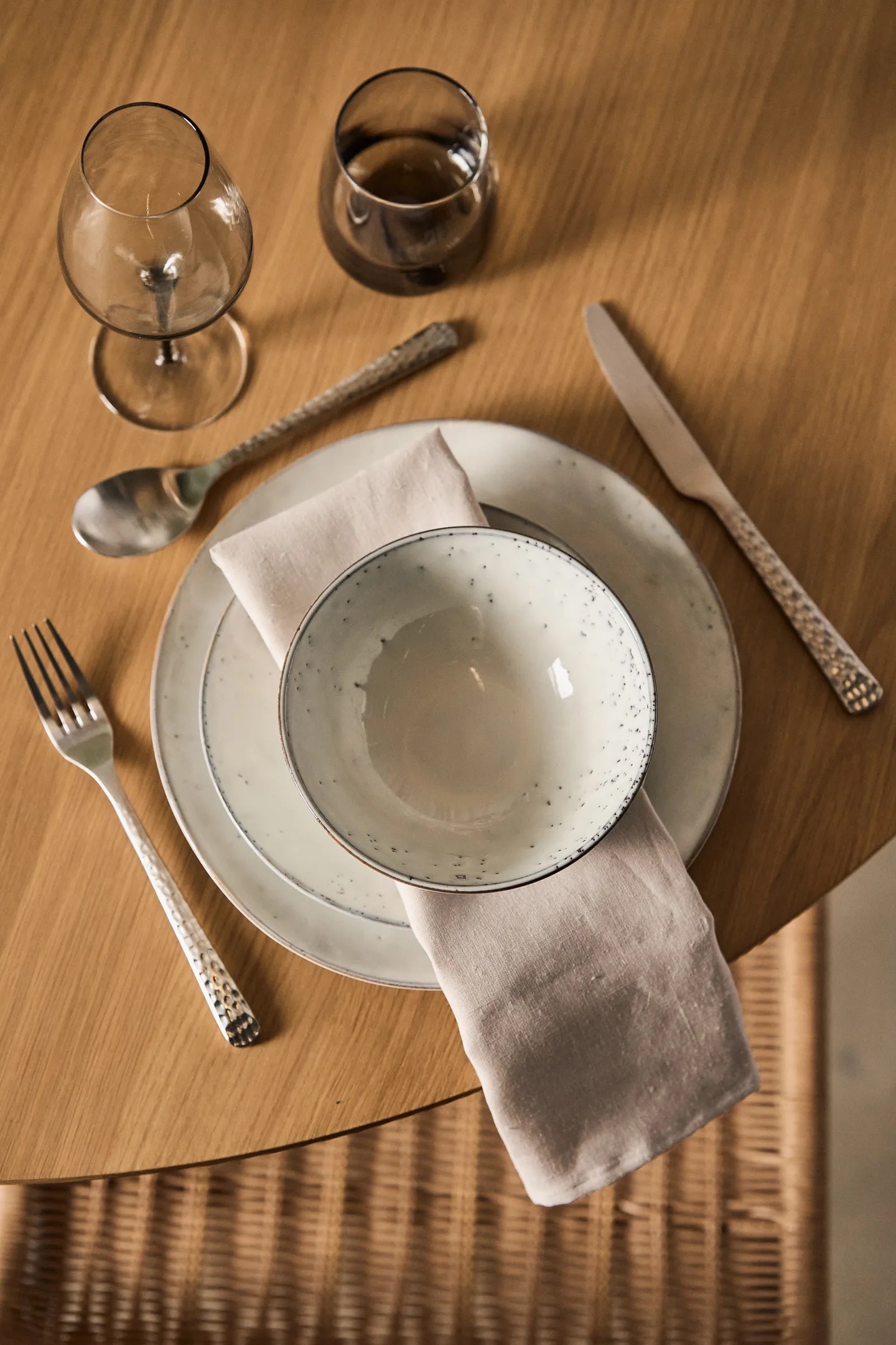 Den oregelbundna glasyren påminner om sand som sveper över stranden och det nordiska havets vindpinade vågor. Detta skapar en skandinavisk touch på matbordet och skapar en riktig semesterkänsla. Servisen Nordic Sand från Broste Copenhagen är gjord av diskmaskinssäkert stengods.