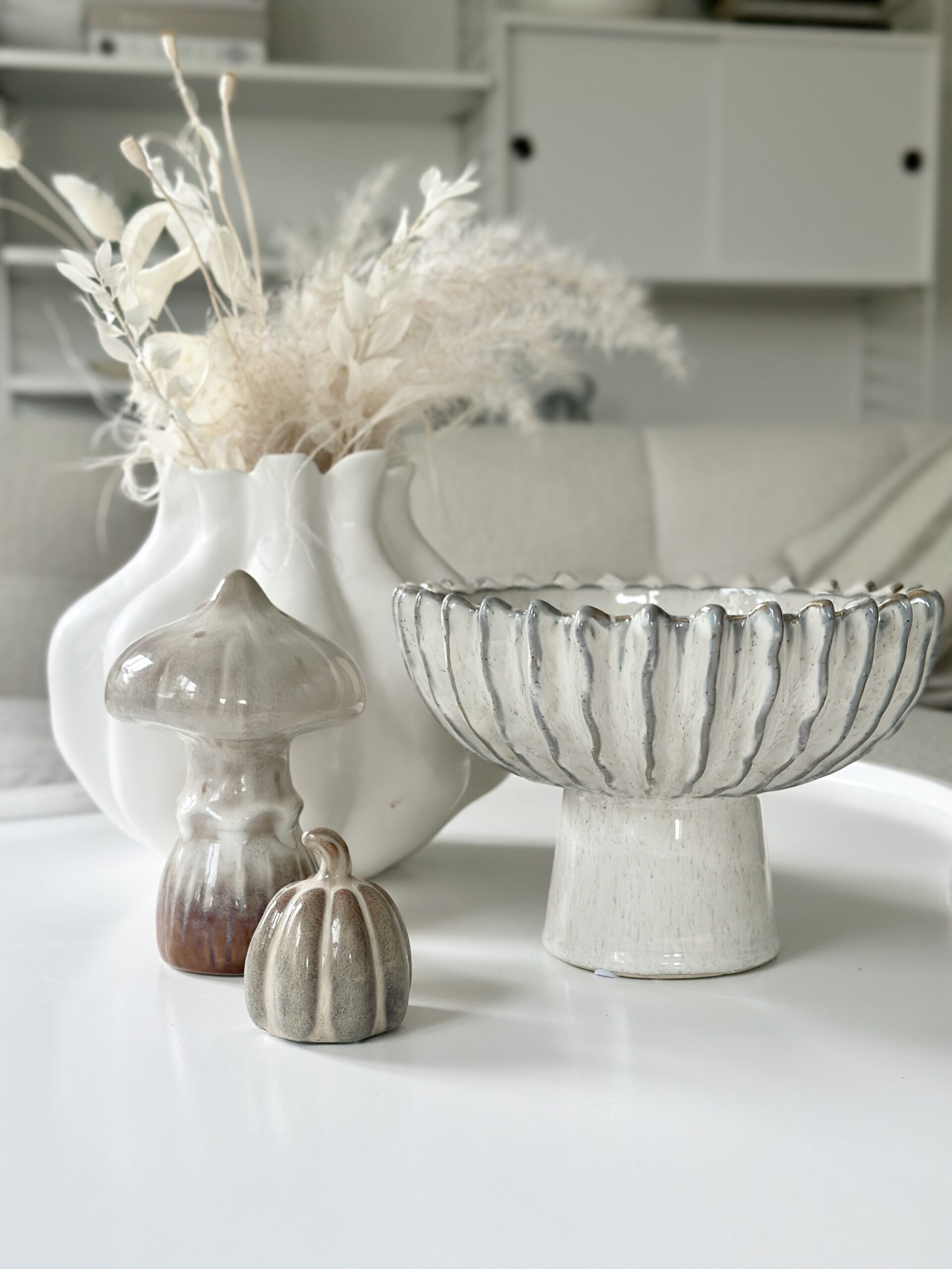 Två söta orangefärgade porslinspumpor. Ställ en fin liten pumpa på hyllan eller ha den som en dekoration i en höst- eller vinterdukning. Finns i flera färger.