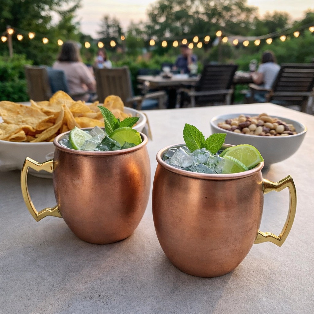 Två stycken klassiska Moscow Mule muggar i rostfritt stål med matt kopparfärgad beläggning och gyllene handtag. Lätta att rengöra och hållbara över tid. Perfekta för att servera en klassisk Moscow Mule i sin autentiska behållare, men fungerar såklart även för andra läckra drinkar. Fint set att ge bort i present eller helt enkelt för att servera dina egna cocktails med stil och imponera på dina gäster.Allt du behöver för att förbereda ditt Moscow Mule-recept är: vodka, Schweppes, ingefärsöl och limejuice. Tillsätt lite krossad is för att njuta av den kyld! *Går lika bra utan Vodka.