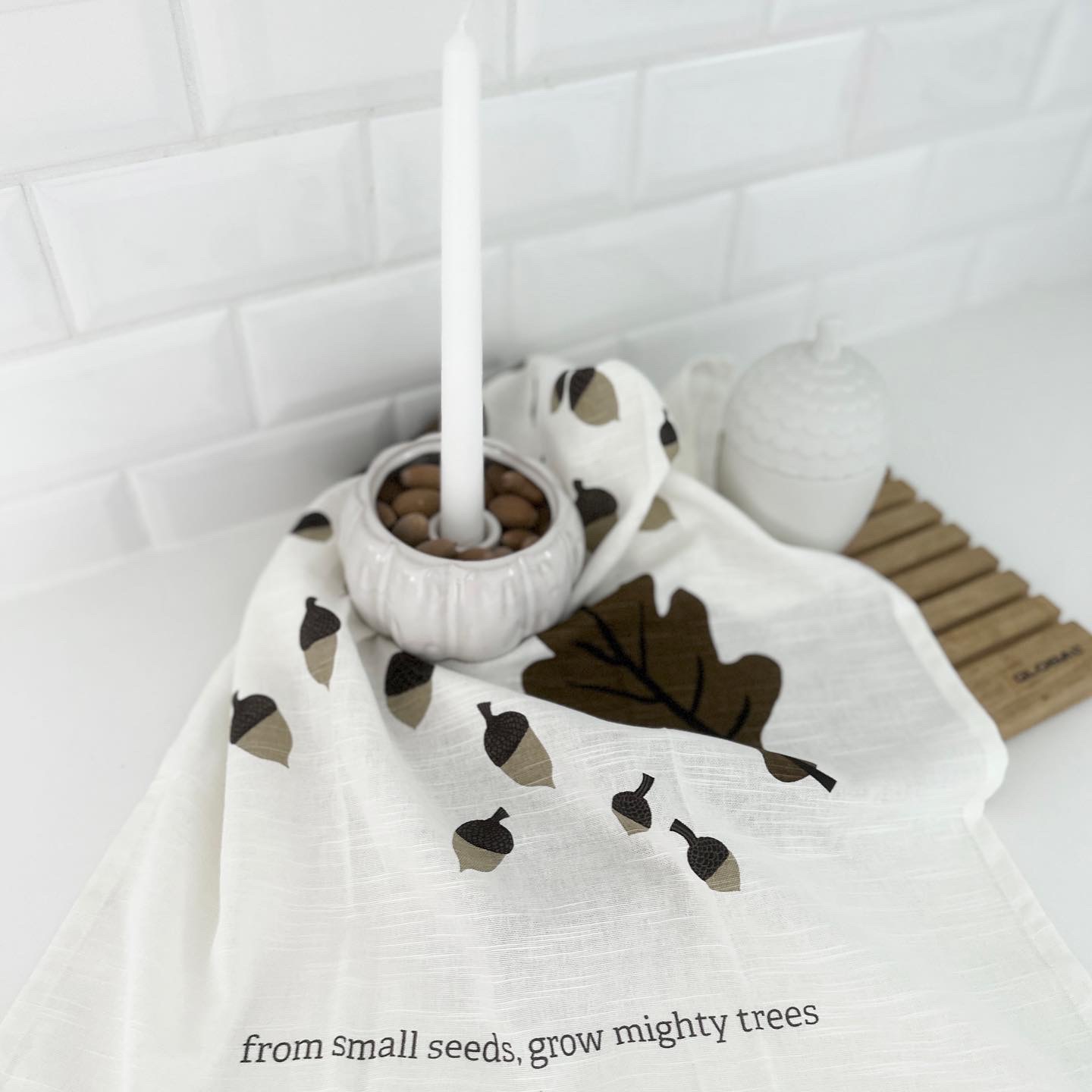 Fin liten ljusstake i form av en pumpa. Sätt i ett ljus och låt den lysa upp i höstmörkret. Fyll den om du vill, med ekollon, nötter, kvistar eller små kottar. En fin höstpresent!