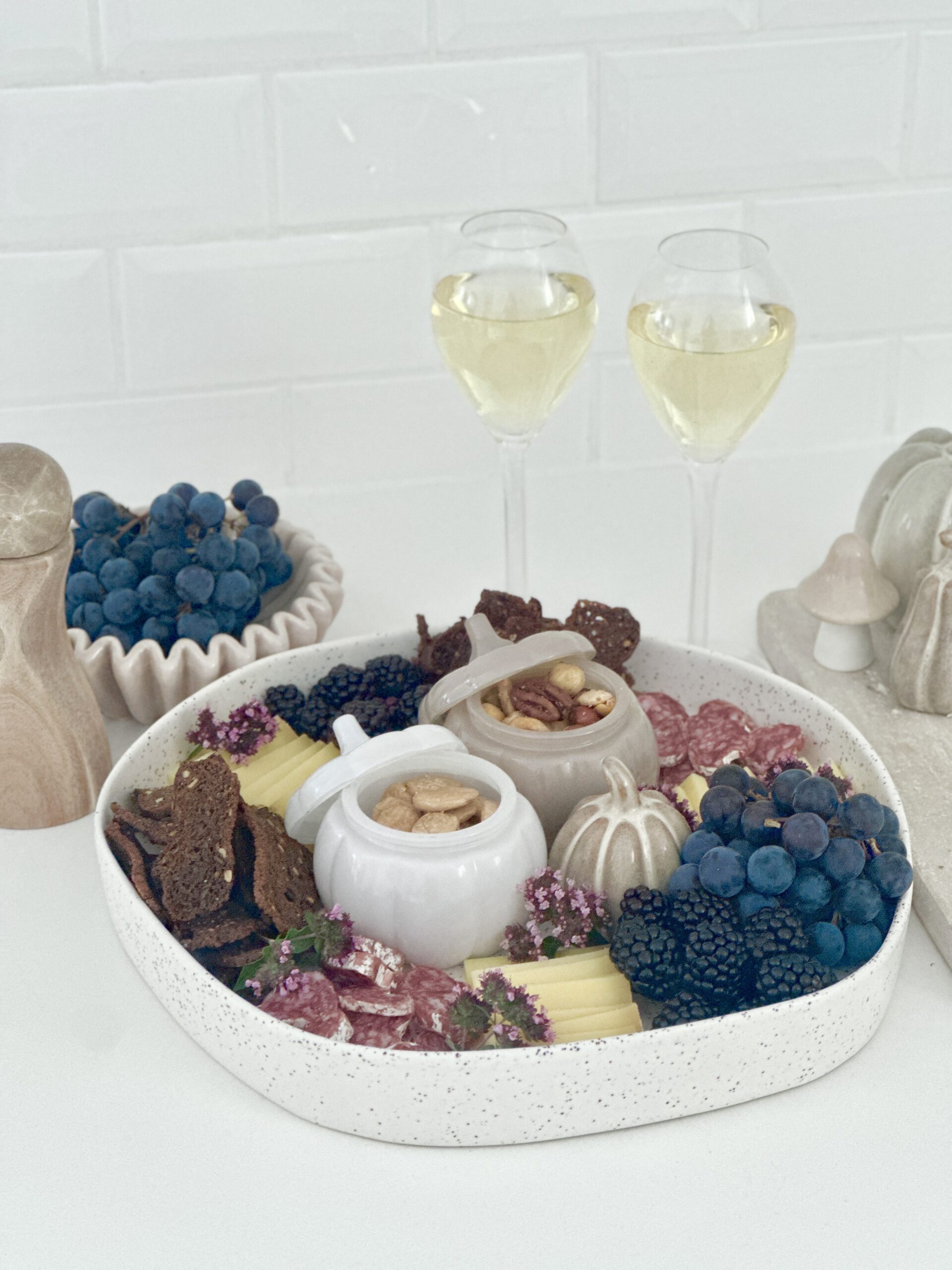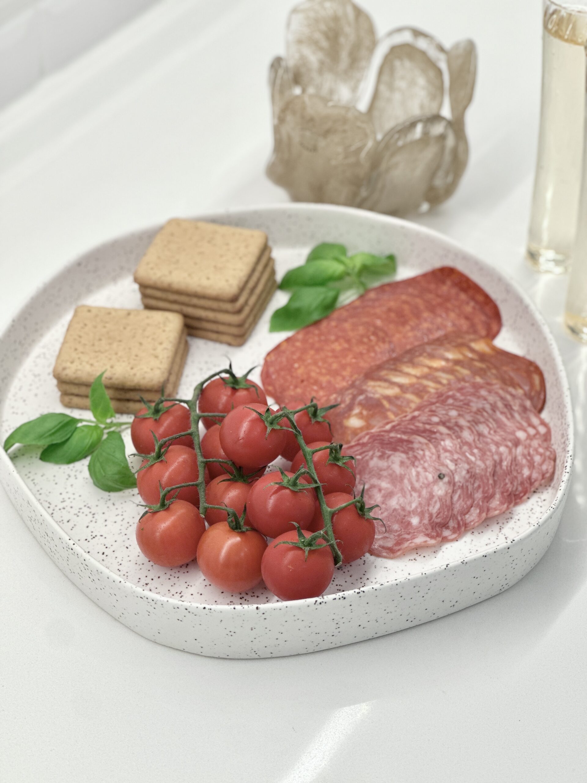 Handgjort fat, tillverkat i Portugal. Ett stiligt fat som passar perfekt för att skapa en dekorativ ljusuppsättning eller servera chark och snacks. Den enkla men eleganta designen gör fatet också fint att ha framme som en dekorativ detalj.