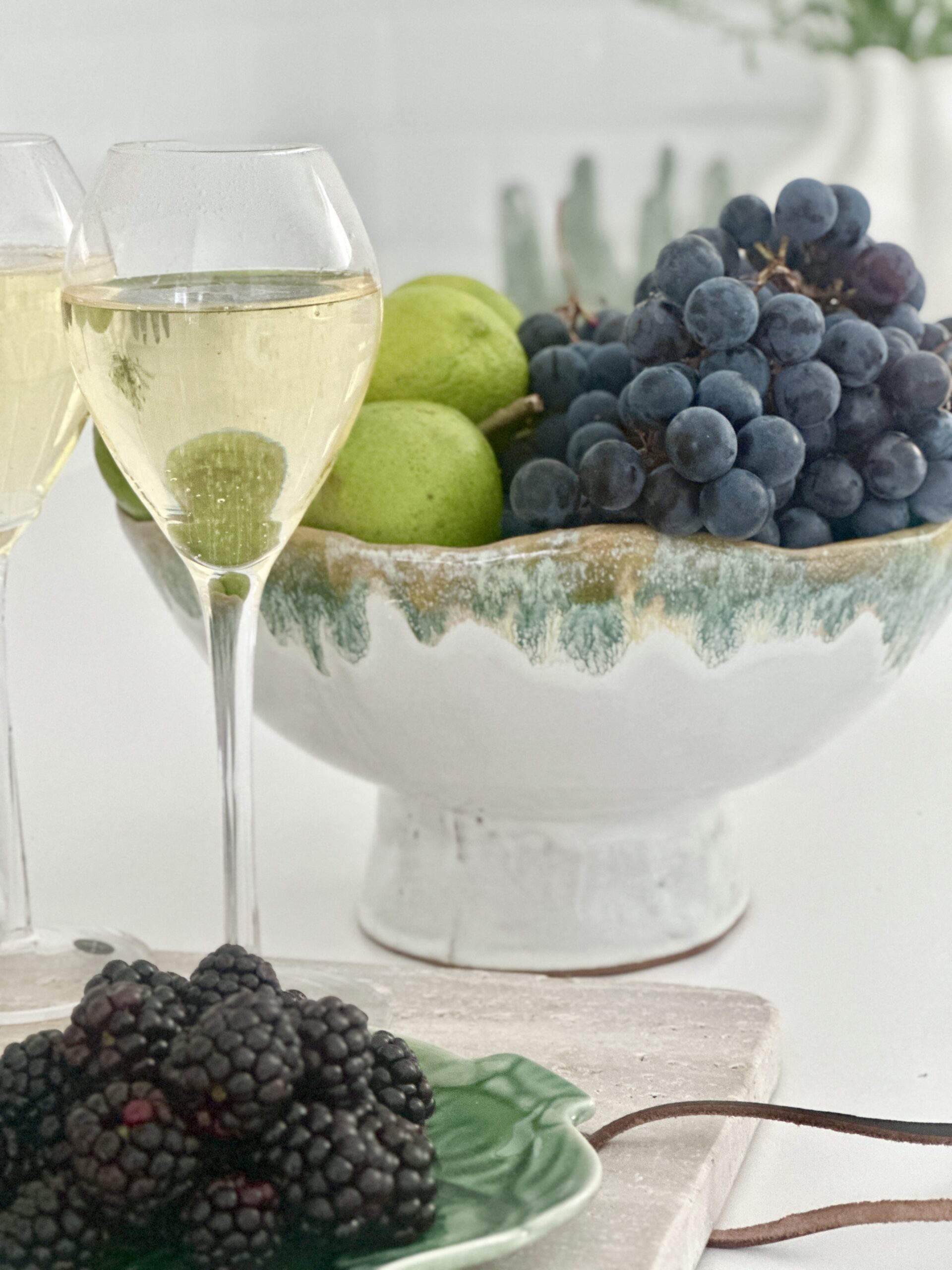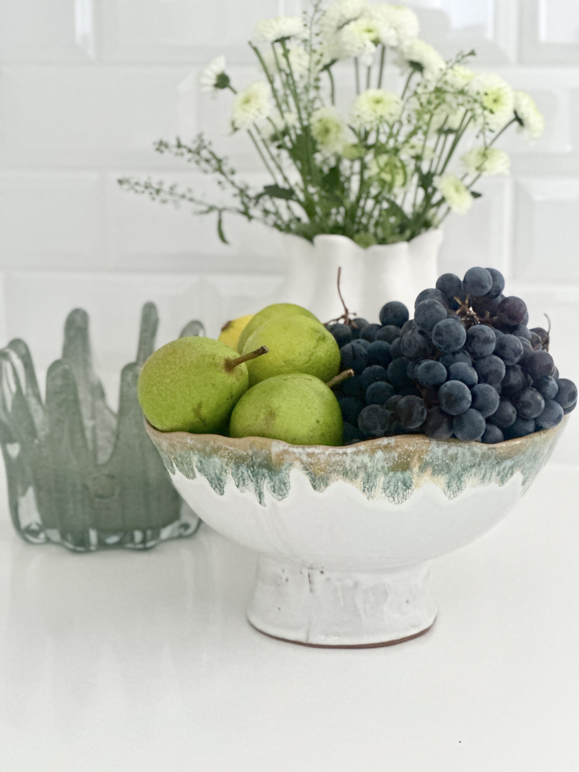 Vacker skål för servering, uppläggning eller dekoration från danska Bloomingville. Vitt glad i form av en blomma. Passar perfekt för frukt, snacks, sallad eller som ett fint stilleben i hyllan.
