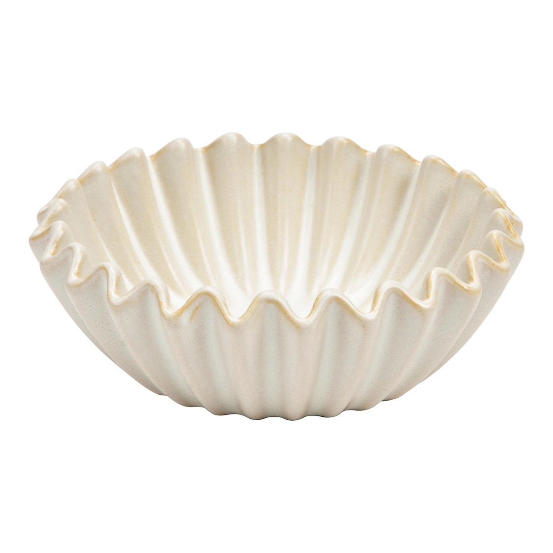 Fin klassisk skål i vit keramik med dekorativt vågiga kanter. Perfekt för snacks, godis, såser, tillbehör eller bara som dekoration i hyllan.