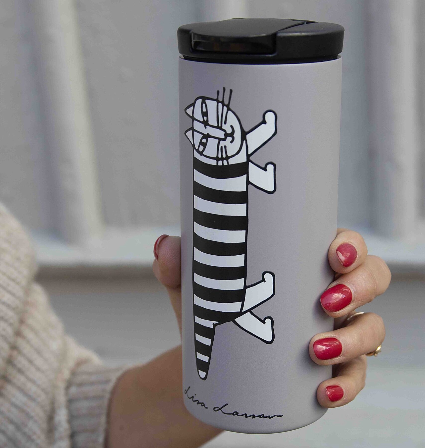Den stilrena termosmuggen med Lisa Larsons ikoniska katt Mikey håller din favoritdryck varm i flera timmar. En perfekt kombination av funktion och tidlös svensk design, lika fin på jobbet som på resan eller i bilen.