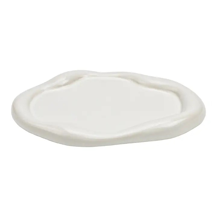 Fint uppläggningsfat i vit keramik med dekorativt vågiga kanter. Perfekt för snacks, godis, bakverk, tillbehör eller bara som dekoration i hyllan.