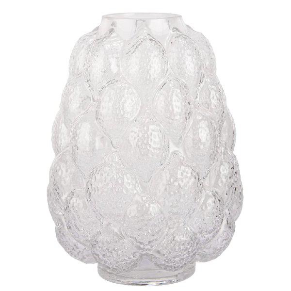 Läcker glasvas med ett klassiskt mönster av citroner, som ger en medelhavskänsla. Fyll den med blommor, kvistar eller strån och den blir ett naturligt blickfång på bordet.